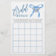 Mantenha os convidados entretidos com este elegante jogo de bingo de chá de panela! Apresentando um anel de diamante a aquarela com uma fita azul e um cabeçalho de caligrafia moderno, este cartão é uma maneira divertida de envolver todos durante a abertura de presentes. Os hóspedes enchem cada praça com um presente que pensam que a noiva receberá. À medida que os presentes são desempacotados, eles marcam seus fósforos — cinco em uma fila ganham!