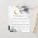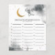 Um cartão de jogo "baby name", com chá de fraldas sobre o tema da lua, com uma camada de aquarela em cinzas com lua de ouro falsa e estrelas. Os textos são editáveis. Um jogo perfeito para jogar durante o chá. aos hóspedes para anotar nomes de bebês que começam com cada alfabeto. Quem termina todos os alfabetos primeiro ganha!