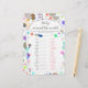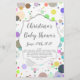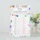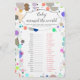 Este cartão de jogo de chá de fraldas apresenta uma fonte moderna de escrita em fundo multicolor de pontos, perfeita para um bebê, uma menina ou uma surpresa! Use este cartão para sua festa de revelação de gênero! O lado de trás está com as respostas.