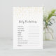 Este jogo Dourado de predições para bebês do Confetti é perfeito para um chá de fraldas ou borrão clássico, neutro em relação ao gênero. O design apresenta um confete de ouro falso sobre um fundo branco com elegante caligrafia escura.