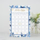 Transforme a abertura de presentes em um destaque divertido com este cartão de jogo "Baby Bingo"! Projetado com elegantes borboletas azuis e detalhes do ouro, ele traz charme e entusiasmo para sua celebração. Os convidados marcam palavras relacionadas a bebês à medida que os presentes são abertos, fazer o momento ainda mais alegre. Se este design faz você sorrir, mas você gostaria dele em outro produto, apenas nos mande mensagem — nós o criaremos com prazer! Desejando-lhe a celebração mais doce. Calorosamente, Estúdio de saudações 💙 🦋