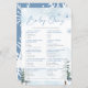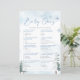 Chá de fraldas de jogos do Quiz chá de fraldas no tema do inverno com pinheiros e flocos de neve. Seguem-se as respostas: 1. C 2. B 3. A 4. C 5. A 6. A 7. B 8. B 9. 10. C
