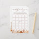 O Jogo Bingo Floral do Chá de fraldas Pequeno Pumpkin Fall encarna a essência da elegância rústica e do encanto do outono, convidando os entes queridos a celebrar a chegada de um precioso pequeno no meio da beleza da temporada de outono. Com sua representação caprichosa de flores silvestres rústicas e uma abóbora encantadora, simbolizando calor e abundância, o item estabelece a palco de um encontro cheio de amor, risos e memórias queridas. Complementar a estética rústica é a elegante caligrafia moderna, que acrescenta um toque sofisticado aos itens, evocando um senso de refinamento e estilo. Com sua mistura de encanto rústico e elegância moderna, este item promete um chá de fraldas tão encantador quanto memorável, onde família e amigos se reúnem para chá dos pais a serem apaixonados e bençãos enquanto embarcam nesse novo capítulo de suas vidas. Itens correspondentes estão disponíveis.