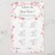 Jogo de chá de fraldas de lado duplo. Um lado é "O que há no seu telefone?" e o outro é "O que há na sua bolsa?" Este cartão de jogo de chá de fraldas apresenta um script moderno sobre o fundo de pontos cor-de-rosa, perfeito para uma menina!