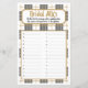 O Bridal ABCs Flannel and Frost Chá de panela Game terá seus convidados batendo em seus cérebros pelo óbvio. Os convidados correrão para inventar um item no tema do casamento para cada letra do alfabeto. Jogue um jogo cronometrado ou até alguém preencher tudo.