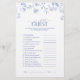 Apresentando nosso brilhante jogo de Chá de panela vitoriano francês azul e branco! Este jogo "Encontre o convidado" é a adição perfeita ao seu próximo chá de panela. Ele apresenta uma mistura refrescante de estilo tradicional e moderno, com flores azuis vitorianas clássicas desenhadas à mão de flores de jardim, abelhas e borboletas de um lado. Além disso, você pode personalizá-lo com seus próprios detalhes noivas na caligrafia moderna escrita à mão para torná-lo realmente único. E como um toque especial adicionado, vire-o para encontrar uma textura azul coordenadora no verso adicionando ainda mais detalhes. Não hesite - este jogo de uma só vez fará com que o seu evento se lembre de todos! Ver suite aqui: https://www.zazzle.com/collections/french_blue_white_victorian_floral_bridal_shower-119265327422133417 Contacte o designer para produtos correspondentes. Copyright Surridge Design Co. para Elegant Invites, todos os direitos reservados.