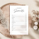 O cartão de jogo clássico de chá de panela apresenta uma tentativa de casamento com 15 palavras embaralhadas para os seus convidados desembaraçarem. Marque o número de respostas corretas para determinar o vencedor. RESPOSTA GRUPO-CHAVE Bridesmaid Registro Honeymoon Recepção Buquê Rapariga Chá de panela Corantes de Óculos Flores Aisle Cerimônia de Fotógrafo