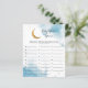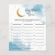 Um cartão de jogo "baby name", com chá de fraldas sobre o tema da lua, com uma abertura em azul com lua de ouro e estrelas. Os textos são editáveis. Um jogo perfeito para jogar durante o chá. aos hóspedes para anotar nomes de bebês que começam com cada alfabeto. Quem termina todos os alfabetos primeiro ganha!