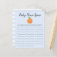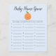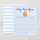 Um cartão de jogo de nome de bebê de chá de fraldas, de tema bonito e bonito, com ilustrações de uma fruta laranja. Os textos são editáveis. Um jogo perfeito para jogar durante o chá. aos hóspedes para anotar nomes de bebês que começam com cada alfabeto. Quem termina todos os alfabetos primeiro ganha!