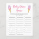 Cartão de jogo "baby name" do tema do sorvete bonito com ilustração aquosa do sorvete rosa e roxo em um cone waffle. Os textos são editáveis. Um jogo perfeito para jogar durante o chá. aos hóspedes para anotar nomes de bebês que começam com cada alfabeto. Quem termina todos os alfabetos primeiro ganha!