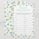 Nosso jogo de nomes de bebês com bolinhas de menta e ouro é excelente de ter em qualquer chá de fraldas. Nossas cartas têm uma lista de 20 animais e linhas para os convidados escreverem. Faça seus hóspedes adivinharem como os bebês dos animais são chamados - é mais difícil do que você pensaria! CHAVE DE RESPOSTA: 1)Cub 2)Kitten 3)Pintinho 4)Calf 5)Fawn 6)Puppy/Pup 7)Duckling 8)Calf 9)Tadpole/Polliwog 10)Kid 11)Gosling 12)Foal/Yearling/Colt/Filly 13)Joey 14)Criança 15 iglet 16)Pup 17)Bunny/Kit 18)Lamb/Lambkins 19)Hatchling 20)Cub/Pup/Whelp