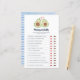 O jogo do partido neutro por gênero Avocado é o complemento perfeito para a celebração do seu chá de fraldas! Este jogo divertido e interativo apresenta cartões de jogo adoráveis e temáticos de abacate que são adequados para qualquer chá de fraldas, independentemente do sexo. Reúna seus convidados e desfrute de um jogo encantador cheio de antecipação e entusiasmo. Com ilustrações charmosas de abacate e uma design neutra em termos de gênero, este jogo de bingo certamente trará alegria e riso à vossa ocasião especial.