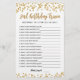 Adquira este jogo editável e desfrute de 2 ruas de alta qualidade Trivia Aniversário Como você conhece o cartão do seu evento! Este é um modelo de jogo, você pode mudar as perguntas como quiser! Dourada Confetti design.