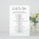 Jogo de Chá de Noiva "Would She Rather". Quiz divertido e simples / jogo de adivinhação onde os convidados tentam combinar suas respostas com as da noiva. O título "Would She Rather" se destaca em caligrafia manual com elegância casual. Design minimalista chique com tipografia preta e branca em um fundo branco acabado, com uma lavagem de aquarela suave e paleta de cores verde suave no verso. Design simples moderno e elegante para coordenar com muitos temas de chá de noiva. Por favor, navegue pela minha coleção para itens correspondentes ou envie-me uma mensagem para criar os modelos que você precisa.