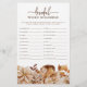 Elegante Jogo de Palavras. Eleve a diversão em seu chá de panela com a coleção de Chás de panela de outono "Cair no Amor". Este jogo do Word Scramble apresenta um padrão de coordenação no verso e lindas folhas de aquarela pintadas manualmente, dahlias e rosas em tons de queda ricos. O design elegante garante que seu evento irradie calor e charme. Crie uma celebração inesquecível de amor e beleza com detalhes engajados e pensativos. (Chave de Resposta - lua de mel, recepção, noivo, buquê, primeira dança, convite, marido, casamento, padrinhos de casamento, damas de honra, amor, chá de panela, salve a data, noiva, esposa, casamento, beijar a noiva, ser noiva, amarrar o nó, felicidade de casamento)