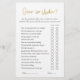 Este chá de panela brilhante de ouro feminino ou jogo de casamento 'Sobre ou Sob' será amado pelos seus convidados. A design romântica apresenta a inscrição no ouro e um fundo de mármore em ouro rosa na parte de trás do panfleto. Nossos cartões de jogo duplos são uma bela e prática adição a qualquer chá de panela. Essas placas projetadas profissionalmente são rapidamente personalizáveis. Você pode personalizar a parte traseira do cartão com os nomes, datas ou qualquer outro texto. Adicione seu texto personalizado a este design usando o botão "Personalizar" no lado direito do item ou clique no botão "Editar" para organizar o texto, alterar as fontes e as cores.