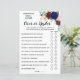 Inclusão do jogo em Inglês e Espanhol (frente e verso), em Sobre ou Sob chá de panela. Mude Bride para Name (Nome) no modelo para as versões em inglês e espanhol. Para mais personalização (pergunta de alteração e outra redação, cor da fonte, estilo da fonte ), clique em personalizar, role para baixo e clique no link "clique para personalizar ainda mais". COMO JOGAR: Os convidados adivinham se acham que o número em cada declaração está acabado ou abaixo