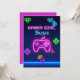Jogo no néon rosa, azul, amarelo gamer Convite