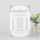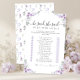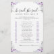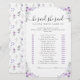 Jogo de chá de noiva “Ele disse, Ela disse” moderno e elegante, apresentando flores roxas e lavanda rodeadas por folhas verdes. Perfeito para chás de noiva de primavera e verão, celebrações inspiradas em jardins e festas de despedida de solteira, este jogo estiloso para impressão adiciona um toque divertido e sofisticado às atividades e decoração do seu chá de noiva.