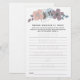 Um divertido jogo para a sua festa de noivado com este design artístico de flores azuis empoeiradas e rosadas salmão. Os seus convidados escreverão a sua memória favorita com a noiva para depois ela ler e todos adivinharem de quem é a memória. O seu nome e a data estão subtilmente tingidos ao fundo, sobrepostos com linhas onde os convidados podem escrever as suas histórias. Personalize facilmente o texto.