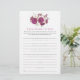 Um divertido jogo para a sua festa de noivado com este design de flores brancas e borgonha. Os seus convidados irão escrever a sua memória favorita com a noiva para ser lida em voz alta e todos adivinham de quem é a memória. O seu nome e a data estão subtilmente tingidos ao fundo, sobrepostos com linhas onde os seus convidados podem escrever as suas histórias. Personalize facilmente o texto.