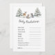 Este jogo de "predições de bebês" de animais florestais de inverno é perfeito para um chá de fraldas ou borrifo de áreas florestais neutro em termos de gênero. O clássico design rústico apresenta uma cena do inverno com pinheiros e bebês da floresta. A caligrafia é uma cinza escura de cor, com uma tipografia simples contrastante, sobre um fundo branco básico. QSD118