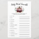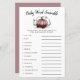 Cartões de jogos de palavras de bebê com tema de abóbora, chá de fraldas, com ilustração de uma abóbora rosa com brilho de ouro falso. A lista de palavras neste cartão está relacionada com bebês e eles estão embaralhados. Os hóspedes vão competir quem pode desembaraçar todos eles primeiro! CHAVE DE RESPOSTA: 1. cadeirinho 2. leite 3. caneta de recreio 4. pacificador 5. fralda 6. cadeira de balanço 7. berçário 8. baby monitor 9. pastilha 10. fórmula 11. rolete de borracha 12.
