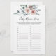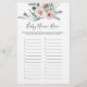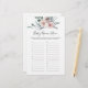 O cartão de jogo de corrida de nomes de bebês do chá de fraldas com tema Boho rosa apresenta uma ilustração de rosa rosa-d'água e verde-aquarela eucalyptus garland e uma elegante fonte de estilo manuscrito.
