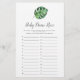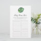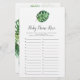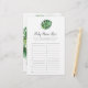 Este jogo de corrida de bebês de chá de fraldas de palma tropical selvagem é perfeito para um chá de fraldas de tema de praia. A design apresenta um conjunto exótico de folhas de palmeiras de banana-d'água verde, samambaias, folhagem, plantas botânicas e verde para uma sensação tropical de verão. Personalize a parte de trás do cartão de jogo com o nome da futura mãe e a data do chá.