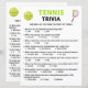 ⭐️ O que é: Jogo de Tênis Trivia é um jogo de festas. Quanto você sabe sobre tênis? Combate com todos os amigos e familiares que podem ganhar mais alto. Chave de resposta do Jogo tênis Trivia: 1. 2. A, 3. C, 4. C, 5. C, 6. B, 7 8. 9. A, 10. B, 11 A, 12. A, 13. C, 14. B, 15 C, 16. 17. B, 18.