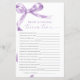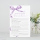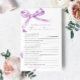 Jogo "Trivia For Bride And Groom" do Arco lavanda - Adicione diversão ao chá dos seus casais com este charmoso cartão de jogos com um delicado design roxo do arco. Este jogo "Trivia For Bride And Groom" é perfeito para engajar convidados e celebrar o casal no estilo. Com uma escrita elegante e sotaques femininos, este cartão de jogo é uma bela adição a qualquer tema de chá de casais. *** Insira o H141 na pesquisa da loja para encontrar todos os itens correspondentes *** Ou visite nossa Coleção de Chás de fraldas de Arcos de Lavanda. *** Este design de alta qualidade é fácil de personalizar para corresponder às cores, estilos e temas do seu chá. Para mais personalização, clique no link "Editar usando a Ferramenta de Design" e use nossa ferramenta design para modificar esse modelo. Se precisar de ajuda ou itens correspondentes, entre em contato comigo.