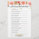 Esta folha de jogos de dois lados pode ser personalizada adicionando o nome da noiva e a data do chá. Por favor, veja toda esta coleção para ver outras peças correspondentes!