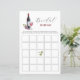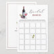 Tema do vinho Chá de panela Cartão de caça com bingo, com copo e garrafa de vinho de aquarela. Personalize a parte traseira da placa com o nome da noiva e a data do chá.