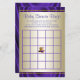 Jogo de bingo chá de fraldas com adorável menina vestindo um tutu roxo bonito e uma corda de pérolas em um par de calçados elegantes de alto salto em um rico fundo roxo e ouro. Este cartão de jogo de bingo de chá de fraldas bonito é facilmente personalizado com o seu texto.
