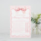 Um clássico sofisticado "Adivinha quem? Jogo "mamãe ou Pai" projetado para uma chá de menina, adornada com um arco rosa-rosa-pastel charmoso, uma faixa de faixa e um padrão polkadot rosa-claro-rosado no fundo. Envolva seus hóspedes com este jogo delicioso, perfeito para adicionar diversão e entusiasmo à sua celebração enquanto cria memórias queridas.