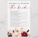 Comece a festa com este divertido Bingo Chá de panela DUPLO e como você conhece bem os jogos da Noiva! Dobre a diversão pelo preço de um! Este elegante design boêmico apresenta um belo buquê de aquarela de flores roxas e burgundy e um verde esmagador. Clique no botão Personalizar e "Clique para personalizar mais" para editar a cor do texto do script. Veja a coleção inteira para mais itens correspondentes!