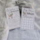 Comece a festa com este divertido Bingo do Chá de fraldas duplo e Predicações/Desejos! Dobre a diversão pelo preço de um! Veja toda a nossa coleção para completar o seu chá de fraldas!