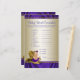 Jogos de chá de bebê roxo e dourado com adorável bebê menina vestindo um lindo tutu roxo e colar de pérolas em um par de sapatos elegantes dourados de salto alto. Este cartão de jogo de chá de bebê fofo tem palavras embaralhadas de bebê de um lado e teste de rimas infantis do outro. Este folheto de jogo de chá de bebê roxo e dourado é divertido e econômico! Você pode escolher o tamanho do papel e adicionar suas próprias palavras e rimas. Aqui estão as respostas para os jogos: