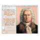 Esta obra de arte é debaixo duns muitos calendários de compositor um calendário de riacho. 12 obras de arte 12 pintores diferentes criaram ao mote do músico de Turíngia, Johann Sebastian Bach. 13. Pintor nachempfand as 12 Portraits e pintou-os num estilo, na nitidez mesma e num estilo real admirável todo. As 12 Portraits em 12 folhas de mês dividem seu sítio com 12 citações que disseram Proeminente na história, para honrar Johann Sebastian Bach a. As citações no calendário de riacho são em alemão e inglês. É um calendário bilingue de riacho. A Portraits são toda conservadora.