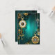 Joias, relógio de ouro com uma corrente de ouro e chaves em um fundo textural verde. Estilo Steampunk.