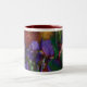 As jóias do verão são "língua da série das flores" de arte floral original pela canção de natal Cavalaris. Íris e hummers Amethyst do rubi, tais jóias preciosas do verão. Aprecie estas íris roxas gostosos com um hummer vermelho do rubi nesta caneca.