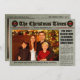 Extra! Extra! Leia tudo sobre isso! Está na hora de sua família fazer manchetes de férias. Você pode adicionar sua foto de família à primeira página do "Natal Times". Além disso, adicione seus nomes à legenda abaixo da foto. Além disso, se quiser trocar a foto na parte traseira do cartão por um pouco de alegria pessoal.