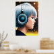 Um retrato de uma jovem senhora de cabelo azul escutando música Esta é uma arte gerada por IA.