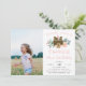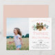 Adorável convite de festas do estilo "boho" para a terceira festa de aniversário de seu pequeno ursinho, um doce urso rosado, vestindo uma pena, flanqueado por flores e folhas pastéis. "Jovem, selvagem e três" aparece em letras de pêssego. Personalize com os detalhes da festa de aniversário de seu filho de 3 anos em tons de pêssego e cinza modernos e brancos, e adicione uma foto favorita da aniversariante no lado esquerdo. Cartões inversos a rosas sólidas.