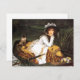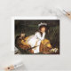 Jovem senhora de James Tissot em convites de um barco. Pintura a óleo em canvas desde 1870. O artista francês James Tissot caracterizou freqüentemente jovens mulheres bonitas em seus trabalhos de arte. A jovem senhora em um barco descreve um brunette bonito em um vestido branco do Victorian que lounging em um barco a remos pequeno estacionado entre juncos na borda de um lago. A mulher guardara seu queixo em sua mão e guardara um fã amarelo no outro. É drapejada por uma cobertura intrincada. Um grupo de wildflowers amarelos e roxos senta-se na frente dela, e um pug pequeno bonito senta-se ao leme do barco. Um presente bonito para fãs da arte de Tissot, de Victorian, e das pinturas do barco do vintage.