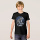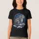 Meninos camiseta preta com imagem de leopardo-da-neve na neve e montanhas.