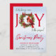 Confira este cartão de convite se você estiver hospedando uma festa de Natal este ano. O design é um topo colorido com a frase "Vamos traz mais JOY para a estação", adornada com uma coroa de Natal e um pássaro cardeal. O resto do cartão inclui detalhes sobre a sua festa, e todos os elementos de design estão sobre um fundo azul-claro-nevado. Personalizar para ajustado das suas necessidades é muito fácil e você pode fazer seu pedido hoje. Desejando-lhe uma feliz época de Natal!