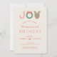 Este convite de aniversário bonito e moderno apresenta uma palavra "alegria" com uma cana doce, uma coroa verde com fita, e uma rena vermelha sobre fundo bege claro. O verso apresenta fundo vermelho com padrões de pontos brancos aleatórios semelhantes a neve. Personalize-o para as suas necessidades. Você pode encontrar produtos correspondentes na minha loja.