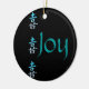 O símbolo Kanji para felicidade ou alegria com texto adicional. Sombras de aqua em fundo preto. Personalizar por trás