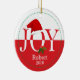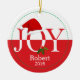 Você vai adorar este Enfeites de natal personalizado vermelho e branco com a palavra, Joy e o chapéu de Papai Noel fofo!